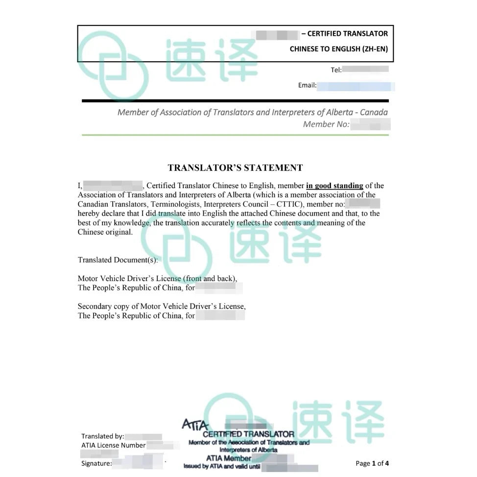 在加拿大,ATIA(Alberta Translators and Interpreters Association) 认证的驾照翻译广受认可,尤其是在**阿尔伯塔省(Alberta)**办理驾照换领、车辆登记等官方手续时,ATIA 认证翻译通常是必需的。
