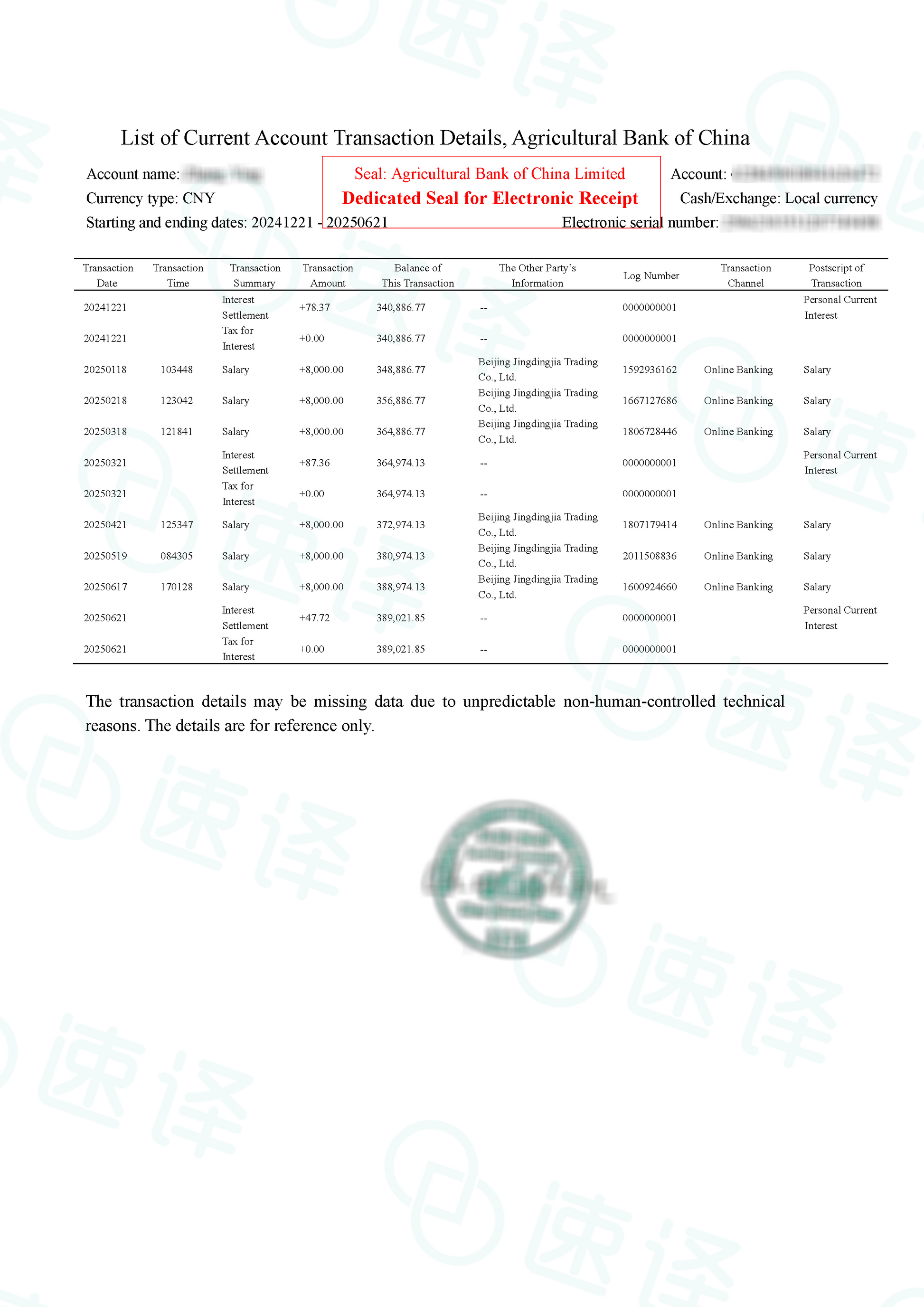 下单后,请扫描或拍照您的银行流水文件的所有页面,请务必保证清晰、完整、无反光、无遮挡,并发送至: